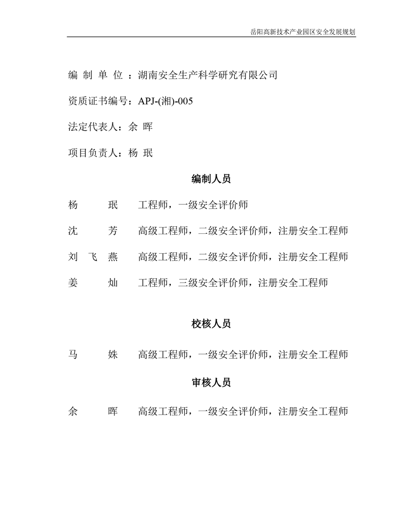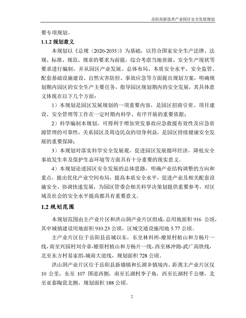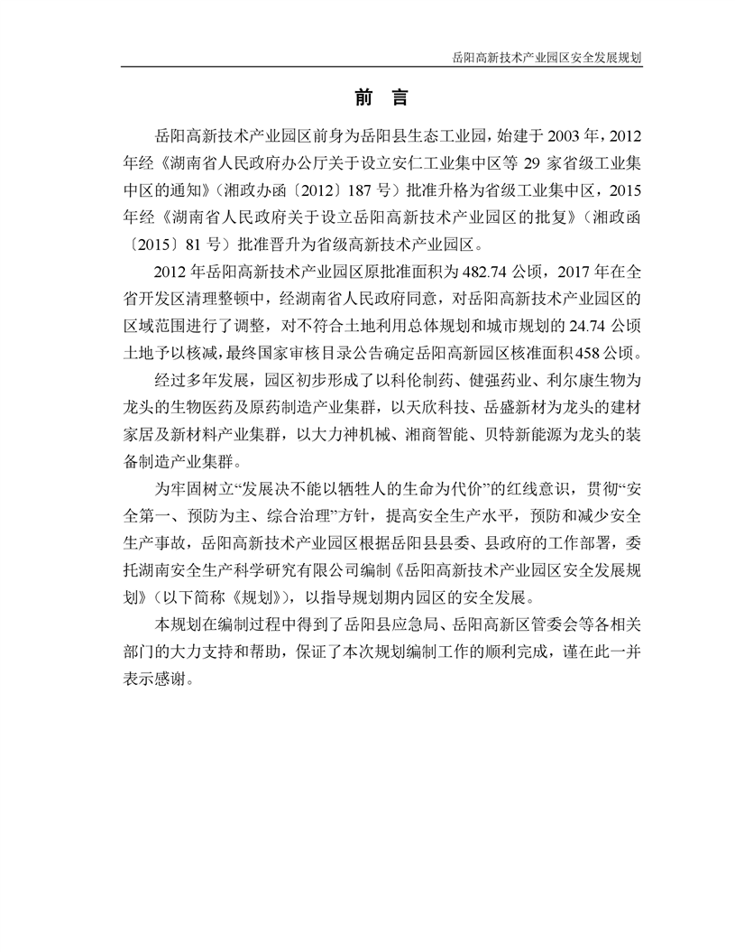 岳阳高新技术产业园区安全发展规划