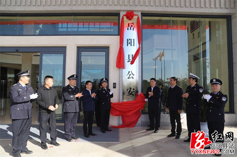 仪式最后,李劲松和肖湘晖共同为县公安局新业务技术大楼进行揭牌。
