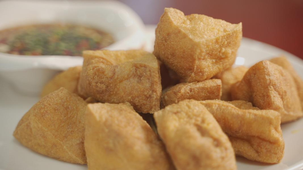 《张谷英镇镇志》《张氏世家族谱》等资料显示,张谷英油豆腐制作技艺随明代万历年间张谷英迁居该地带来,在当地的传承历史近600年。张谷英油豆腐用张谷英黄豆、渭洞茶油和龙涎井清泉,采取传统工艺加工而成。其制作技艺主要包括选料、清洗、浸泡、磨浆、滤浆、煮浆、起锅、点浆、冲膏、压坯、切块、油炸等工序。主要原料黄豆是当地采收籽粒饱满、无虫口的八月黄豆,并以本地天然山泉水加工成豆腐,切片呈规则的三角形,再用当地茶油小火炸制。产品色泽金黄,外皮光滑,内如丝网,外酥内嫩,弹性十足,内含丰富的蛋白质、维生素A、维生素B、铁、钙、磷质,味道鲜美可口,具有较高的营养价值。张谷英油豆腐烹饪方式多元,可炒、可煮、可煨,加工的菜品包括云耳油豆腐、鸡汁煨油豆腐、沾汁油豆腐、青椒炒油豆腐等,是荤宴素席兼用的佳品。