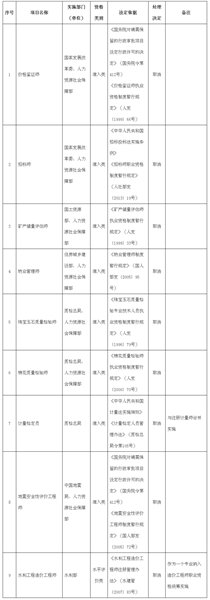 一、取消的专业技术人员职业资格许可和认定事项(共计9项,其中准入类8项,水平评价类1项)