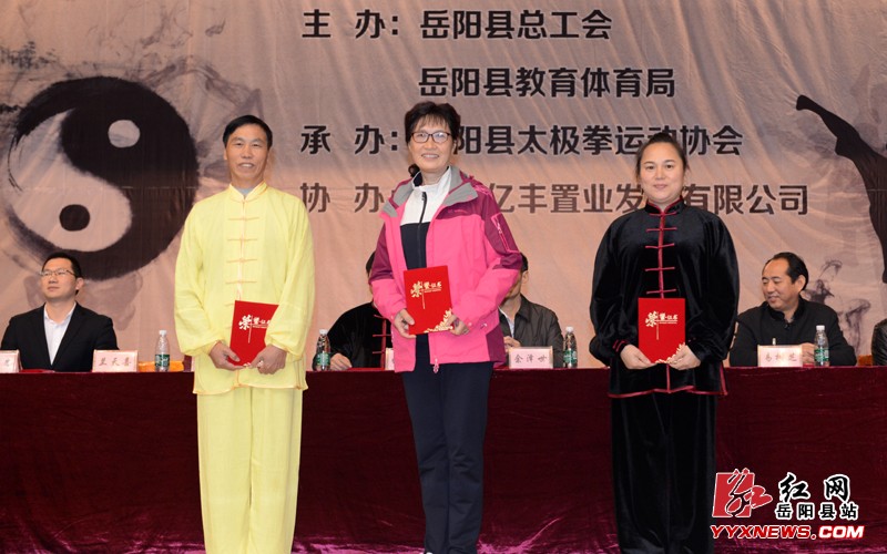 红网岳阳县站11-20讯(分站记者 许伟军)11-19,“悦冠荣城杯”2016岳阳县第一届太极拳比赛暨县太极拳运动协会-会在县体育馆举行,县委常委、政法委书记、县太极拳运动协会名誉会长余泽世,县人大常委会副主任许欧蛟、张艳生出席,来自县人大机关、公安局、教体局、国税局、公田镇、张谷英镇、县二中等7支队伍参加角逐。