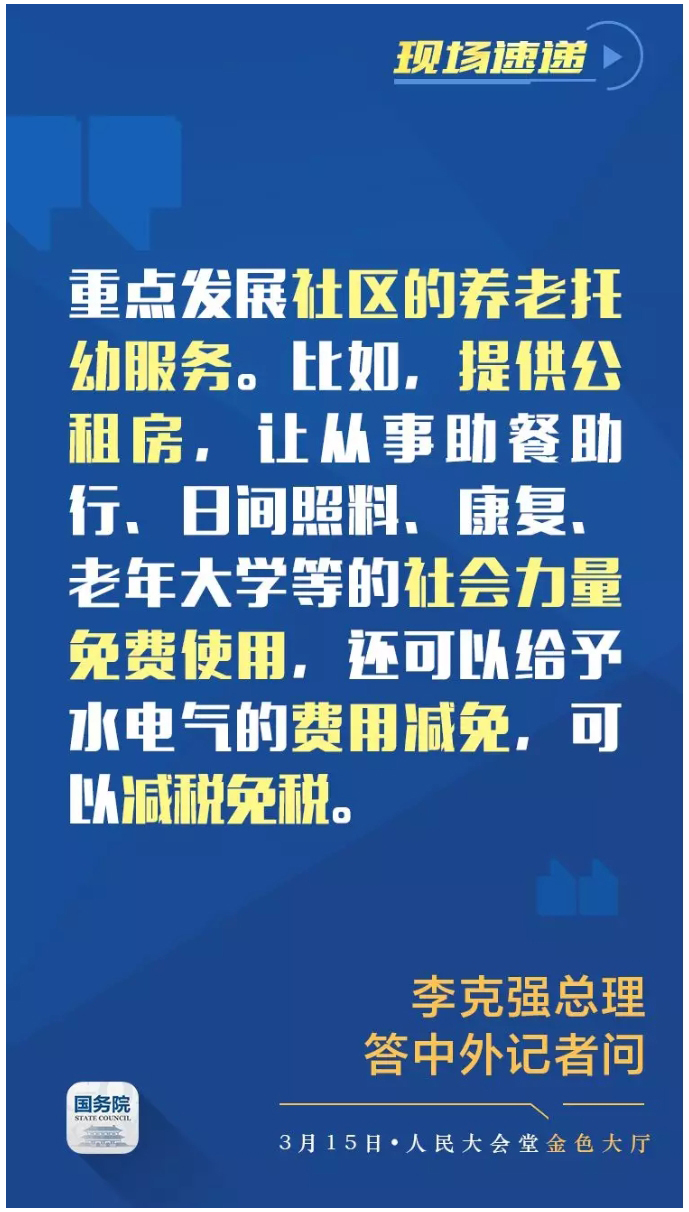 总理记者会重磅!重点发展社区的养老托幼服务