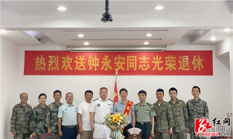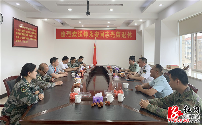 岳阳县融媒体中心5月26日讯(通讯员 周楠)5月25日,县人武部为职工钟永安举行简单而又温馨的退休欢送仪式。县委常委、人武部部长张海波,县人武部政委黄良武参加。
