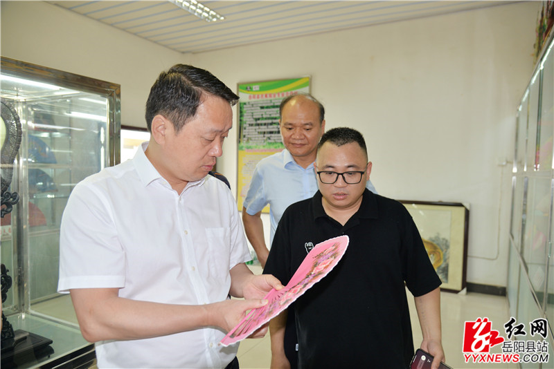 芭蕉扇厂是岳州扇的主要生产厂家,创办于1972年,扇骨制作原料主要是产自张谷英镇的竹子,企业先后带动500多家农户加入工艺扇加工制作。吴光文走进制作车间,与相关负责人深入交流,对芭蕉扇业代表的传统文化价值和带动当地群众增收予以充分肯定。现场,在了解当前企业经营遇到的问题与困难后,他叮嘱相关部门负责人,要保护传统独有工艺,通过公开招揽人才,充实壮大人才队伍;要与企业加强对接,以“文创结合”的方式走出一条属于芭蕉扇业的特色发展道路。