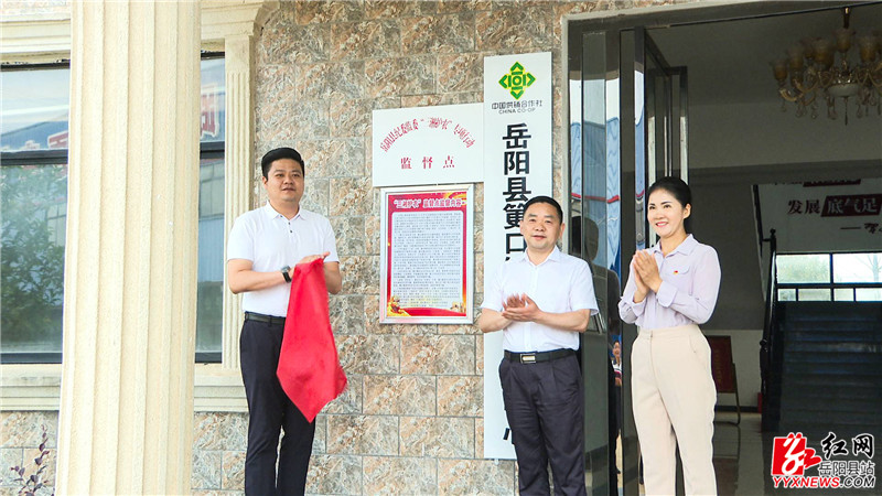 会前,邓旭旺、贺立,与党的二十大代表、县丰瑞农机专业合作社负责人董敏芳共同为“三湘护农”专项行动监督点揭牌。