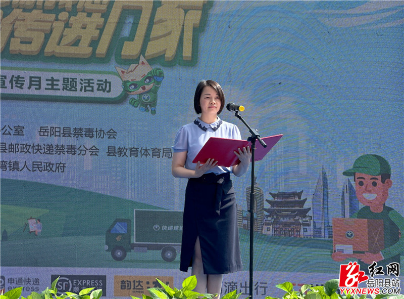 活动现场,肖湘晖宣布:岳阳县“全民禁毒你我他、禁毒宣传进万家”主题宣传月活动正式启动。