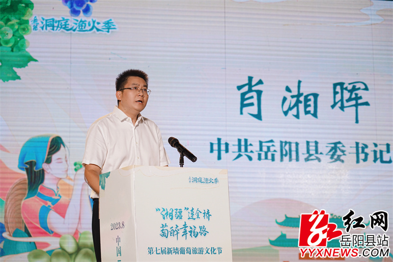 肖湘晖表示,文旅事业是推动发展的重要支撑,节会活动是文化传承的有力载体。此次举办新墙葡萄旅游文化节,旨在贯彻落实中央和省市稳经济、促消费、激活力要求,为加快推进文旅融合发展增添新动力。同时此次我县与新疆吐鲁番市皇葡家园果业签订“疆品入湘·湘品入疆”合作协议,必将成为“湘疆”两地交流合作、互利共赢的新起点,推动全县乡村旅游再上新的台阶。肖湘晖诚邀大家多到岳阳县走一走、看一看,购农特产品、揽风景名胜、享美好生活,为岳阳县带来更多人气与投资,让“小葡萄”成为推动乡村振兴的“大产业”。