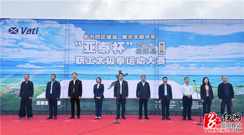 岳阳县融媒体中心11月4日讯(记者熊佳 周星亮)11月4日,我县“亚泰杯”第三届职工太极拳运动大赛在厚德广场隆重开赛,县委书记肖湘晖出席并宣布开幕,县委副书记、县长吴光文,县领导宋华、周峰、周里、王卫兵、续广宁、李樱,县委原常委、县委政法委原书记、县太极拳运动协会名誉会长余泽世出席,来自全县15支代表队的太极拳爱好者和裁判员共500余人参加比赛。
