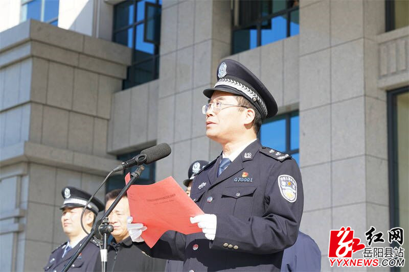 岳阳县融媒体中心11月22日讯(记者袁颖周星亮)国歌嘹亮,红旗猎猎。11月21日,县公安局举行“奋进新征程、建功新时代”升旗仪式,副市长、市公安局党委书记、局长李劲松出席并讲话。县委书记肖湘晖,县领导宋华、周峰、周里、王靖、刘斌清,市、县相关负责人及英模代表、部分退休老干部代表、民辅警代表共计200余人参加升旗仪式。