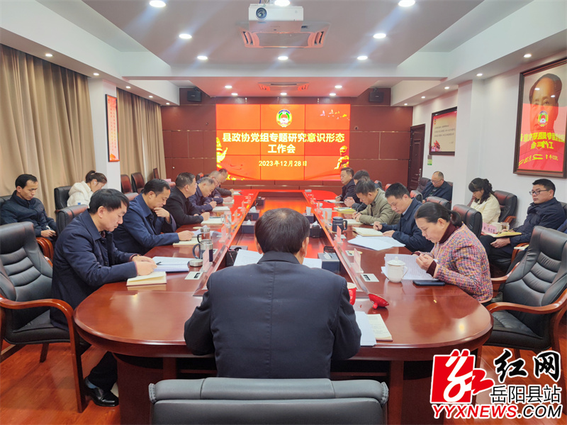 岳阳县融媒体中心12月28日讯(记者 周昱君)12月28日,县政协党组专题研究意识形态工作会召开。县政协主席周里出席并主持会议,副主席刘卫兵、彭荣欣、张忠新,机关“一办六委”全体干部职工及县纪委监委驻县政协机关纪检监察组负责人参加会议。