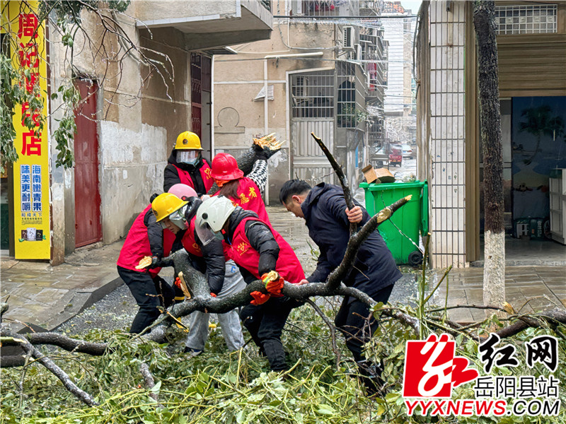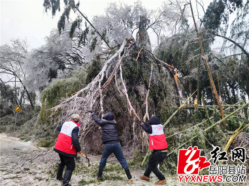 岳阳县融媒体中心2月6日讯(记者 李佳琦 尹宇豪)2月3日晚,我县迎来新一轮较强冰冻雨雪天气,多路段出现树木倒伏断裂,影响过往车辆通行。为保障群众正常生活,切实守护群众生命财产安全,全县2万余名志愿者以雪为令、闻雪而动,弘扬志愿精神,扫雪除冰、畅通道路,为保障群众出入安全筑牢“温暖防线”。