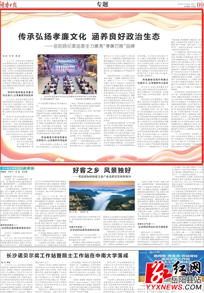 过去一年,县纪委监委在中央纪委国家监委刊发信息3篇,在省市县党政媒体、刊物上共发表纪检监察信息、宣传报道130余篇,其中,《用好“孝廉文化”活化石 打造中国家风名地标》经验性材料获市委常委、市纪委书记、市监委主任谢运策批示肯定并被省市纪委监委内部刊发推介,《传承弘扬孝廉文化 涵养良好政治生态》《岳阳县纪委监委:剑指问题矛盾最深处 共创营商环境最优值》等特色经验做法被湖南日报以特稿推介,阅读量均达10万人次左右,有力提升全县纪检监察工作影响力、震慑力和凝聚力,较好实现政治效果、宣传效果和社会效果相统一。