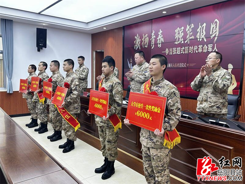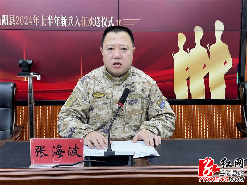 岳阳县融媒体中心3月15日讯(记者 陈佳俊)3月15日,我县举行2024年上半年新兵入伍欢送会。县委常委、县人武部部长张海波出席并讲话,县人武部政委黄良武主持会议。