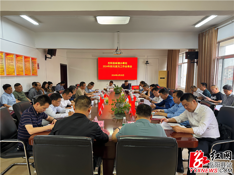 岳阳县融媒体中心4月26日讯(记者 李佳琦)4月25日,麻塘街道2024年防汛度汛工作会商会召开,分析研判今年防汛工作形势,统筹部署防汛备汛工作。县人大常委会副主任胡秉阳,县检察院检察长闵孚君参加。