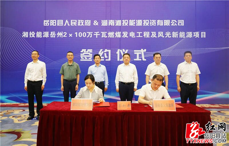 岳阳县融媒体中心5月19日讯(记者熊佳 周星亮)5月17日,岳阳县政府与湖南湘投能源投资有限公司举行岳州2×100万千瓦燃煤发电工程及风光新能源项目签约仪式,市委副书记、市长李挚,省能源投资集团有限公司党委书记、董事长李勇,省能源局副局长袁劲松,市政府秘书长孙志诚,县委书记肖湘晖等县领导见证签约。签约仪式由县委副书记、县长吴光文主持。