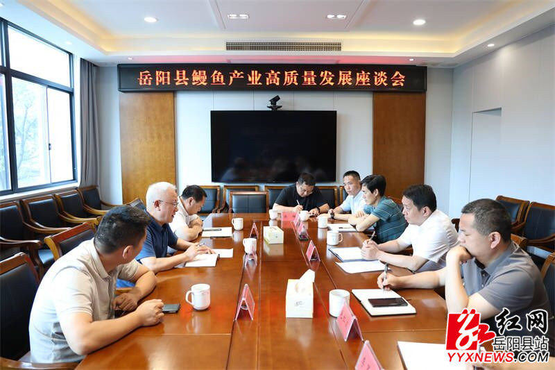 岳阳县融媒体中心5月27日讯(记者 张帆周昱君)5月23日,我县鳗鱼产业高质量发展座谈会召开。中国渔业协会鳗业工作委员会秘书长陈学洲,县委副书记、县长吴光文出席,相关部门、企业负责人参加。