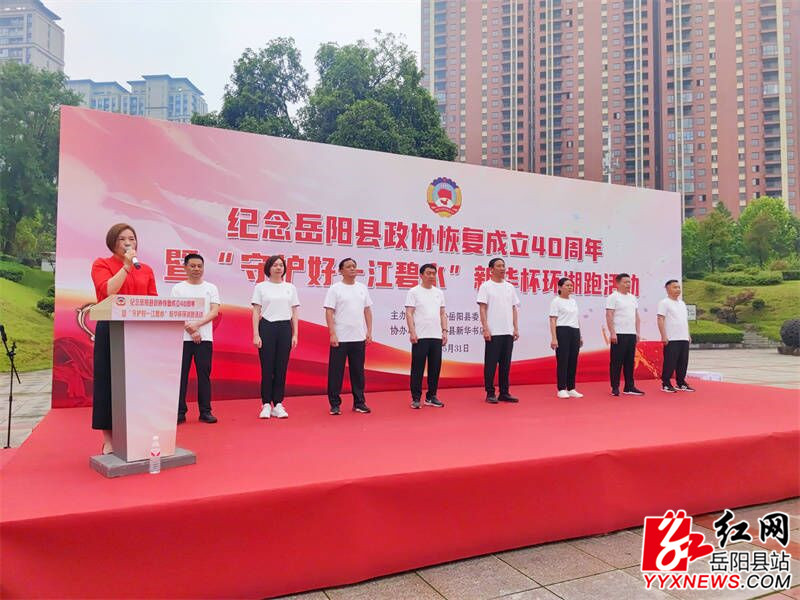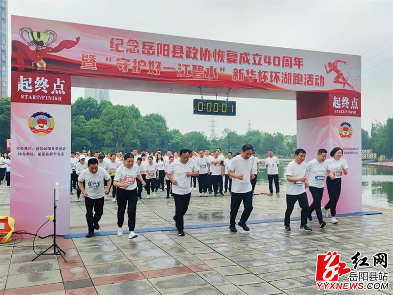 岳阳县融媒体中心5月31日讯(记者周昱君)为了纪念县政协恢复成立40周年,进一步凝聚“守护好一江碧水”的思想共识,5月31日,来自全县的政协委员、政协工作者、志愿者等齐聚荣湾湖,共同奔赴一场环湖聚跑之约。县政协主席周里,副主席刘卫兵 、彭荣欣、张忠新、王敏、敖珊出席活动。