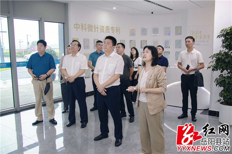 中科微针(北京)科技有限公司是全球最大的微晶贴生产基地之一。肖湘晖详细了解企业基本情况,参观实验室,察看微针技术应用产品及场景,通过显微镜体验斑马鱼实验效果,并与企业负责人深度交流。肖湘晖表示,岳阳县规划医药健康产业园5000亩,获得了医药健康全产业链环评批复,成立了医药产业基金,有能力承接中科微针给药技术科技成果的孵化和壮大,诚邀贵公司近期到岳阳县考察并开展实质性洽谈,实现合作共赢。