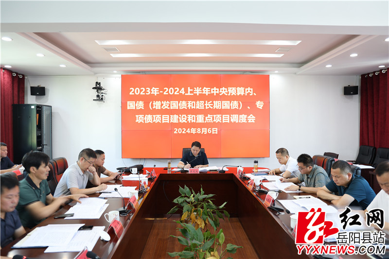 岳阳县融媒体中心8月8日讯(记者 袁颖 张帆)8月6日,县委副书记、县长吴光文主持召开2023—2024年上半年中央预算内、国债、专项债项目建设和重点项目调度会,研究部署项目储备、申报、实施以及资金支付等重点工作,动员全县上下锁定目标、攻坚克难,全力推动项目早谋划、早落地、早投用。县领导童勋海、胡海平、张文毅参加。