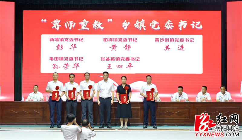 县委书记肖湘晖为“尊师重教”乡镇党委书记颁发荣誉证书