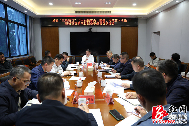 岳阳县融媒体中心10月23日讯(记者张帆 袁颖)10月21日,县委副书记、县长吴光文主持召开城建“三类项目”(中央预算内、国债、专项债)实施和城市更新项目储备申报情况调度会,强调各级各部门要加快推进项目建设,确保更多项目得到国家政策支持,共同推动我县经济社会高质量发展。县委常委、常务副县长童勋海,副县长胡海平出席。
