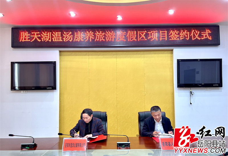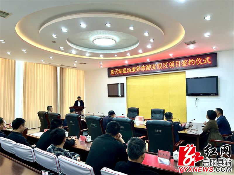 岳阳县融媒体中心11月8日讯(记者 袁颖)11月8日,我县与岳阳市昱华公寓有限公司举行胜天湖温汤康养旅游度假区项目签约仪式。副县长续广宁、副县长提名候选人刘炀,岳阳市昱华公寓有限公司董事长李志耕出席。