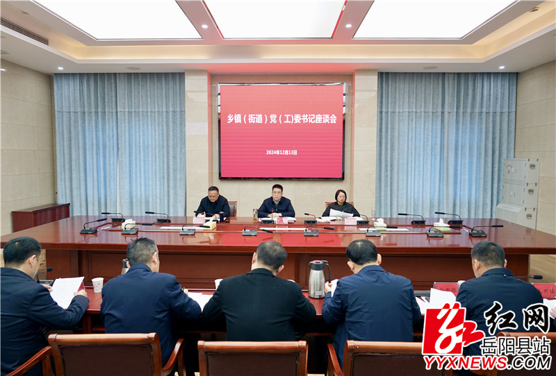 岳阳县融媒体中心12月14日讯(记者 熊佳 周星亮)12月13日,县委书记肖湘晖主持召开乡镇(街道)党(工)委书记座谈会,分析研判当前形势,听取今年工作汇报和2025年工作思路,动员各乡镇(街道)脚踏实地、争先创优,加快推进“四区”建设、奋力推动县域经济社会高质量发展。县委副书记、政法委书记宋华,县委常委、组织部部长方克君出席。各乡镇(街道)党(工)委书记、鹿角区域发展服务中心党组书记参加。
