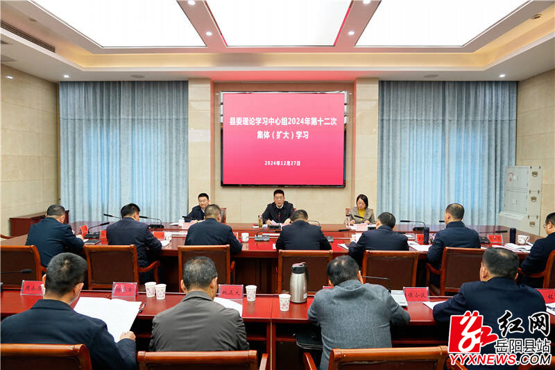 岳阳县融媒体中心12月27日讯(记者 熊佳 尹宇豪)12月27日,县委理论学习中心组举行2024年第十二次集体(扩大)学习,深入学习领会习近平生态文明思想,坚决扛牢“守护好一江碧水”的政治责任,坚定不移走生态优先、绿色发展之路,贯彻落实《中共湖南省委湖南省人民政府关于全面推进美丽湖南建设的实施意见》,全面推进美丽湖南建设。县委书记肖湘晖主持并作总结讲话。