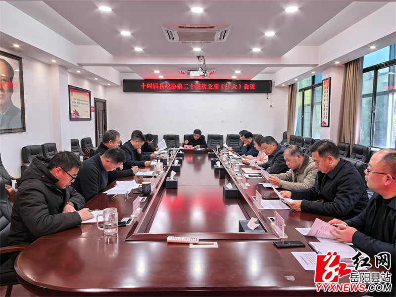 岳阳县融媒体中心1月14日讯(记者张帆)1月9日,十四届县政协第二十四次主席(扩大)会议召开。县政协主席周里主持,副主席刘卫兵、彭荣欣、张忠新、王敏、敖珊等出席。