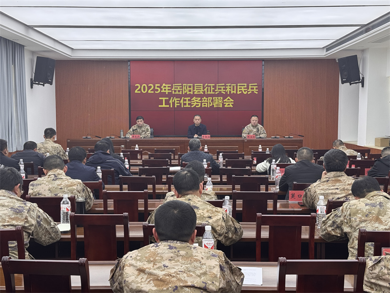 岳阳县融媒体中心1月15日讯(记者尹宇豪)1月15日,我县召开2025年征兵和民兵工作任务部署会,县委常委、常务副县长童勋海,县委常委、人武部部长张海波出席,县人武部政委黄良武主持会议。
