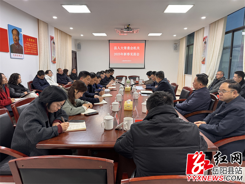 岳阳县融媒体中心2月6日讯(记者 尹宇豪)2月6日,县人大常委会机关召开新春见面会。县人大常委会主任、党组书记周峰出席并讲话,党组副书记、副主任王卫兵主持会议,副主任彭碧芳、胡秉阳、吴承棉、任三星及全体机关干部参加。
