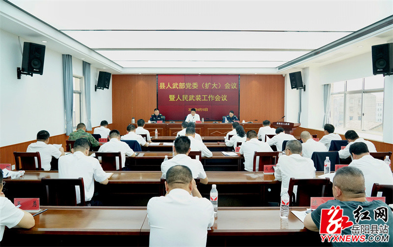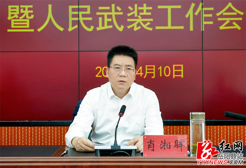 岳阳县融媒体中心4月10日讯(罗爽 周星亮)4月10日,县人武部党委(扩大)会议暨人民武装工作会议召开。会议传达学习湖南省军区、岳阳军分区党委全会精神,回顾总结2024年武装工作,安排部署2025年工作。县委书记、县人武部党委第一书记肖湘晖出席并讲话,强调要深入贯彻习近平强军思想和新时代政治建军方略,忠实履行好党管武装政治责任,加强国防动员和后备力量的建设,推动人民武装工作高质量发展。县人武部党委书记、政治委员楚海军,县人武部党委副书记、部长张海波参加。