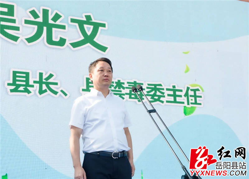 岳阳县融媒体中心6月18日讯(张帆 周星亮)在第38个国际禁毒日即将到来之际,6月17日上午,岳阳县2025年全民禁毒宣传月活动在荣湾湖广场启动。县委副书记、县长、县禁毒委主任吴光文出席并宣布活动正式启动,副县长、县公安局局长、县禁毒委副主任刘斌清出席并致辞。