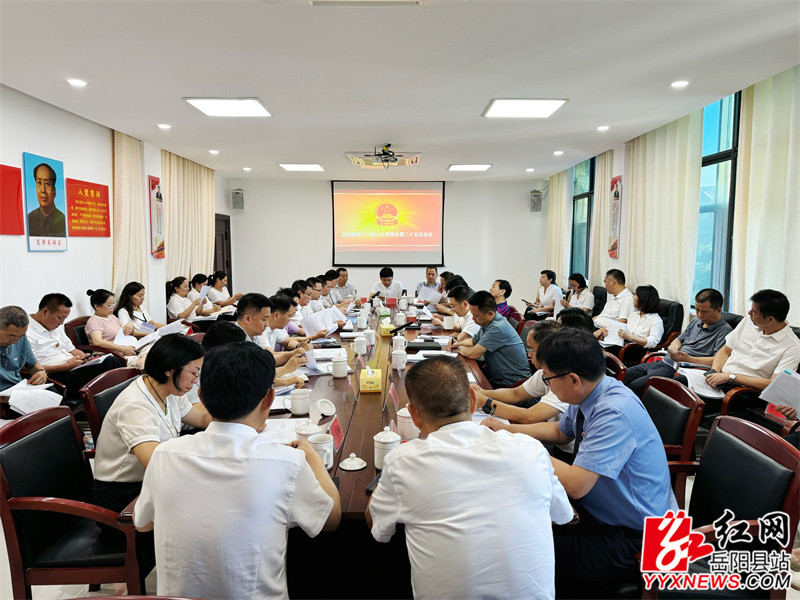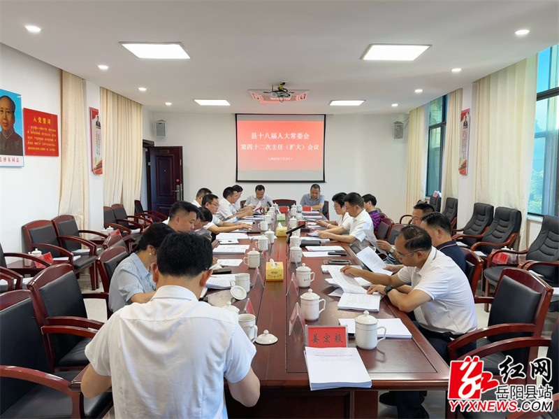 主任(扩大)会议初审了第二十五次常委会有关议题;第二十五次常委会会议听取和审议了岳阳县人民政府关于提请审议《<岳阳县乡镇(街道)履职事项清单(送审稿)>涉及政府履职事项清单》的议案;会议还表决通过了有关人事任免事项。