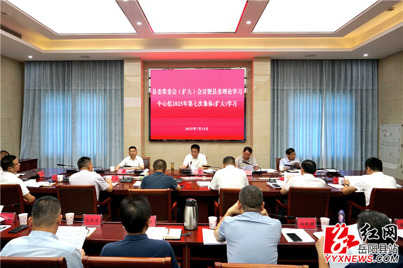 岳阳县融媒体中心7月16日讯(罗爽 周星亮)7月15日,县委书记肖湘晖主持县委常委会(扩大)会议暨县委理论学习中心组2025年第七次集体(扩大)学习,深入学习贯彻习近平总书记关于树立和践行正确政绩观的重要论述,关于统计工作的重要讲话和指示批示精神,关于学习教育最新重要讲话和指示批示精神、中央有关文件会议精神。县委副书记、县长吴光文及其他在家的县“四大家”领导班子成员,法检“两长”等参加。