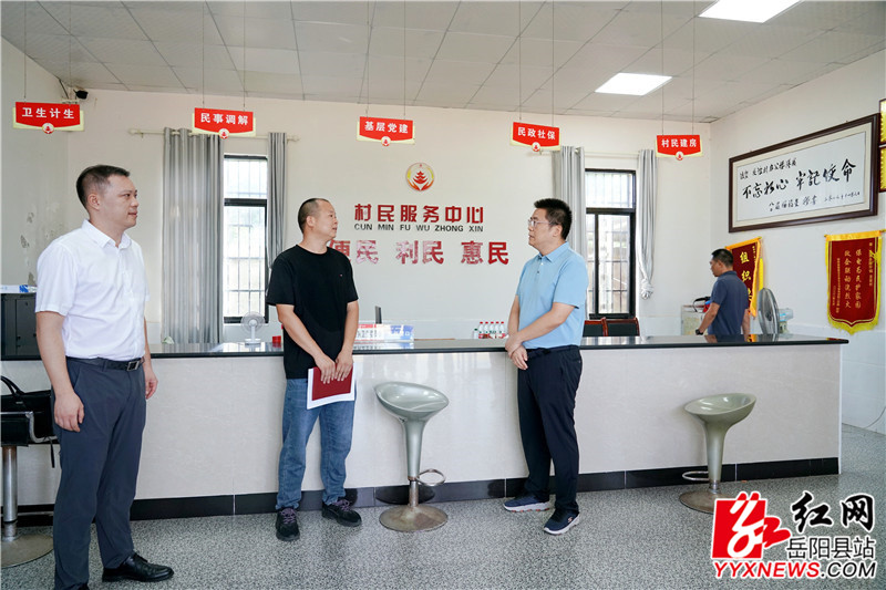 岳阳县融媒体中心7月17日讯(罗爽 周星亮)7月16日,县委书记肖湘晖前往新开镇、新墙镇调研软弱涣散村级党组织建设、产业发展、抗旱工作。他强调,要深入学习贯彻习近平总书记关于党的建设的重要思想,精准发力补短板、破难题、强基础,切实增强村党组织的凝聚力、战斗力,加快发展壮大村级集体经济,推进乡村全面振兴。县委常委、县委办主任王靖参加。