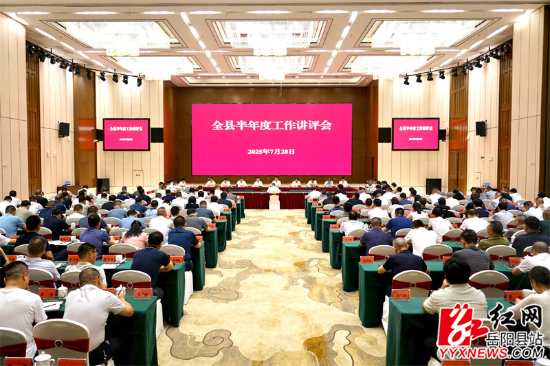 岳阳县融媒体中心7月29日讯(罗爽 周星亮)7月28日,全县半年度工作讲评会召开。会议深入贯彻落实党中央决策部署和省委、市委工作要求,分析总结上半年全县经济运行情况,研究部署后段工作,动员全县上下扛牢经济大县挑大梁责任,进一步提振信心、强化举措,奋战三季度、决胜下半年,奋力推动后阶段工作提质增效、争先创优。县委书记肖湘晖主持会议并讲话,县委副书记、县长吴光文作工作讲评并部署后段工作。