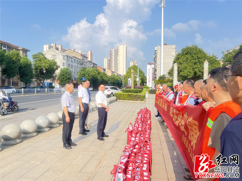 岳阳县融媒体中心7月31日讯(周昱君 黄阳娇)炎炎夏日,热浪袭人。连日来,岳阳县总工会组织开展2025年“工会送清凉、防暑保安康”活动,以实际行动为坚守在高温一线的职工群众送去夏日清凉与组织关怀。县人大常委会党组书记、主任周峰,县政协党组书记、主席周里,县人大常委会党组副书记、副主任、县总工会主席王卫兵,副县长李樱参加。