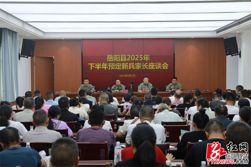 岳阳县融媒体中心9月2日讯(周昱君)9月1日,我县2025年下半年预定新兵家长座谈会暨新兵役前教育动员大会在县人武部召开。县委常委、人武部部长张海波,县人武部政委楚海军及124名预定新兵参加会议。