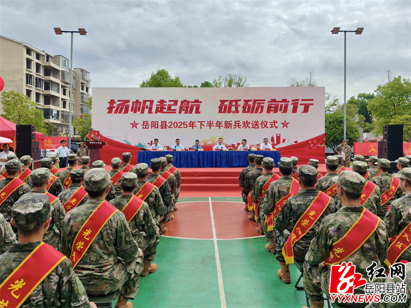岳阳县融媒体中心9月12日讯(罗爽)青春热血踏军旅,铿锵誓言铸军魂。9月12日,我县举行“扬帆起航 砥砺前行”2025下半年新兵欢送仪式,集中欢送即将踏入军营、矢志献身国防、接力强军事业的新兵们。县委常委、县人武部部长、县征兵办公室主任张海波,县人武部政委楚海军,副县长张文毅出席,105名入伍新兵及其亲属参加。