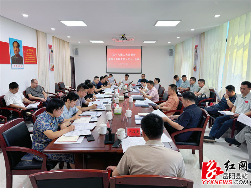 岳阳县融媒体中心9月17日讯(周昱君)9月17日,县人大常委会党组书记、主任周峰主持召开县十八届人大常委会第45次主任(扩大)会议,党组副书记、副主任王卫兵,副主任彭碧芳、胡秉阳、吴承棉出席。