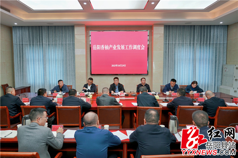 岳阳县融媒体中心10月30日讯(罗爽 周星亮)10月29日,县委书记肖湘晖主持召开岳阳香柚产业发展工作调度会,梳理当前产业现状,分析发展形势,广泛汇聚各方智慧,系统谋划下一步发展路径,为特色农业产业高质量发展注入强劲动能。县委副书记、县长吴光文出席,县领导曹超、王靖、续广宁、敖珊参加。