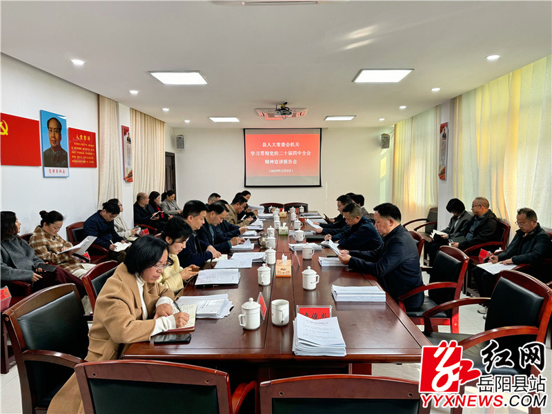 岳阳县融媒体中心12月10日讯(周昱君)12月9日,县人大常委会机关学习贯彻党的二十届四中全会精神宣讲会举行,县人大常委会党组书记、主任周峰主讲,党组副书记、副主任王卫兵,副主任彭碧芳、胡秉阳、吴承棉及全体机关干部参加。