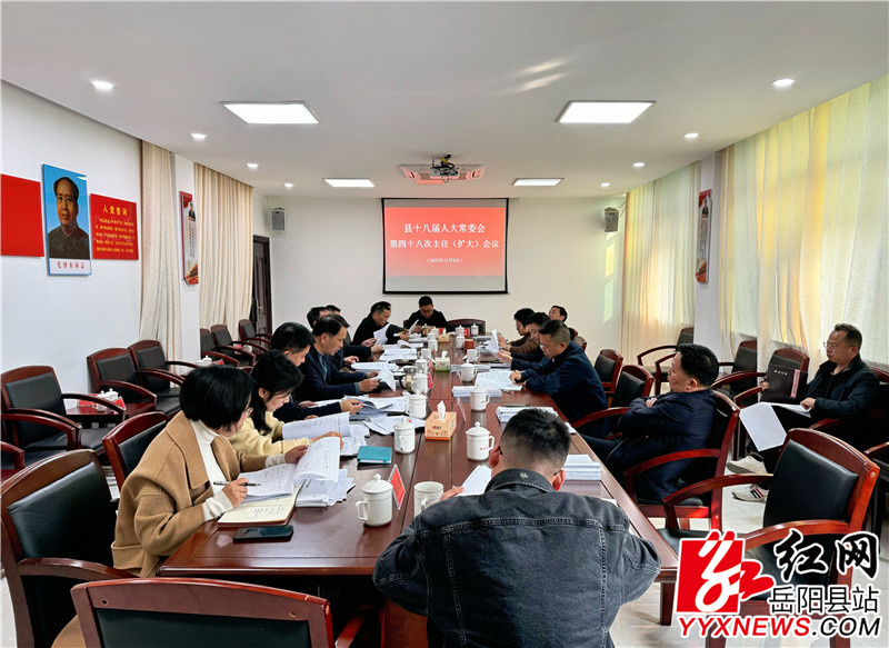 岳阳县融媒体中心12月10日讯(周昱君)12月9日,县人大常委会党组书记、主任周峰主持召开县十八届人大常委会第四十八次主任(扩大)会议,党组副书记、副主任王卫兵,副主任彭碧芳、胡秉阳、吴承棉出席。