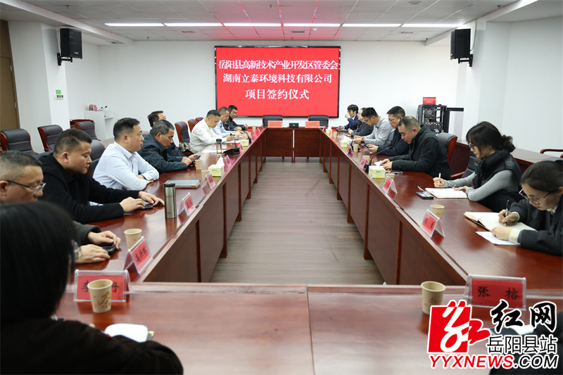 岳阳县融媒体中心12月23日讯(尹宇豪 张帆)12月22日,县高新技术产业开发区与湖南立泰环境科技有限公司举行MOFs材料规模化生产及成型应用项目签约仪式。县委副书记、县长吴光文,岳阳兴长石化股份有限公司总经理付锋,党委书记邹海波出席签约仪式。副县长刘炀主持签约仪式。