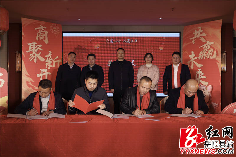 岳阳县融媒体中心2月6日讯(尹宇豪)2月4日,新开镇商会举行2026年年会暨重点项目签约仪式,总结商会发展成效,深化政企合作,凝聚发展共识,为推动地方经济和乡村振兴注入新动能。县领导刘炀、王敏、敖姗出席。