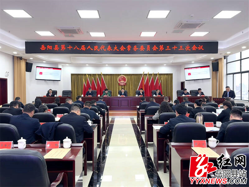 岳阳县融媒体中心3月31日讯(巫筱婷)3月30日,县十八届人大常委会第三十三次会议召开。县人大常委会党组书记、主任周峰,党组副书记、副主任王卫兵,副主任彭碧芳、任三星、周年出席。县委常委、常务副县长方克君,县法院院长古田,县检察院检察长闵孚君列席会议。会议由县人大常委会副主任彭碧芳主持。