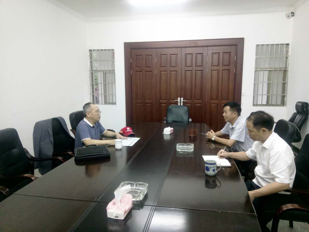 2017-7-1台湾百威国际生物股份有限公司、金百威生物科技有限公司大陆业务副总李兆阳先生来园区考察,台创园主任邹飞跃、副主任尹爱华与李兆阳先生结合岳阳农业资源优势、特色产业,就岳阳台创园产业发展现场交流。