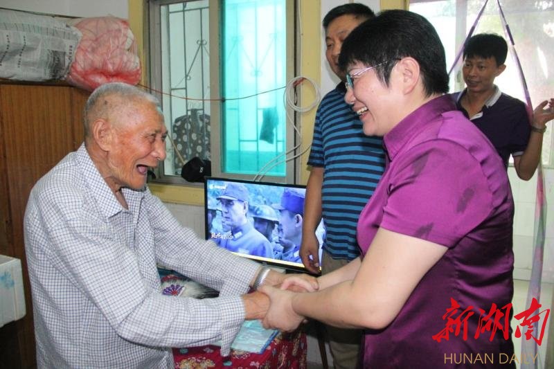 等赶到黄沙街镇时,时针指到21时。在三和村三代从军的抗美援朝老复员军人黄中仁老人家,昏暗的灯光下,李君梅与黄中仁老人亲切交谈,询问身体和生活情况,并嘱咐随行的民政所长:“黄爹三代为国奉献,民政所一定要要尽心尽责,做细做好服务工作!”