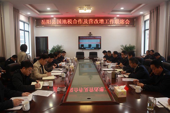 会议学习了《国家税务局 地方税务局合作规范(2.0版)》和《湖南省国家税务局 湖南省地方税务局关于贯彻落实〈国家税务局 地方税务局合作规范(1.0版)〉的意见》等文件,并在会上讨论通过了《2016-岳阳县国地合作工作实施意见(讨论稿)》,明确了前期四项准备工作,即澄清税源、联合办税、信息共享、联合培训。还明确了“营改增”试点工作时间表、任务图。
